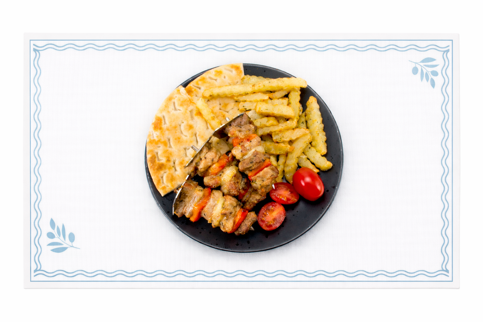Klasická příloha je pita chléb (placka), pomfrity, tzatziky a sezonní zelenina. Maso můžeme pokapat citronovou šťávou.