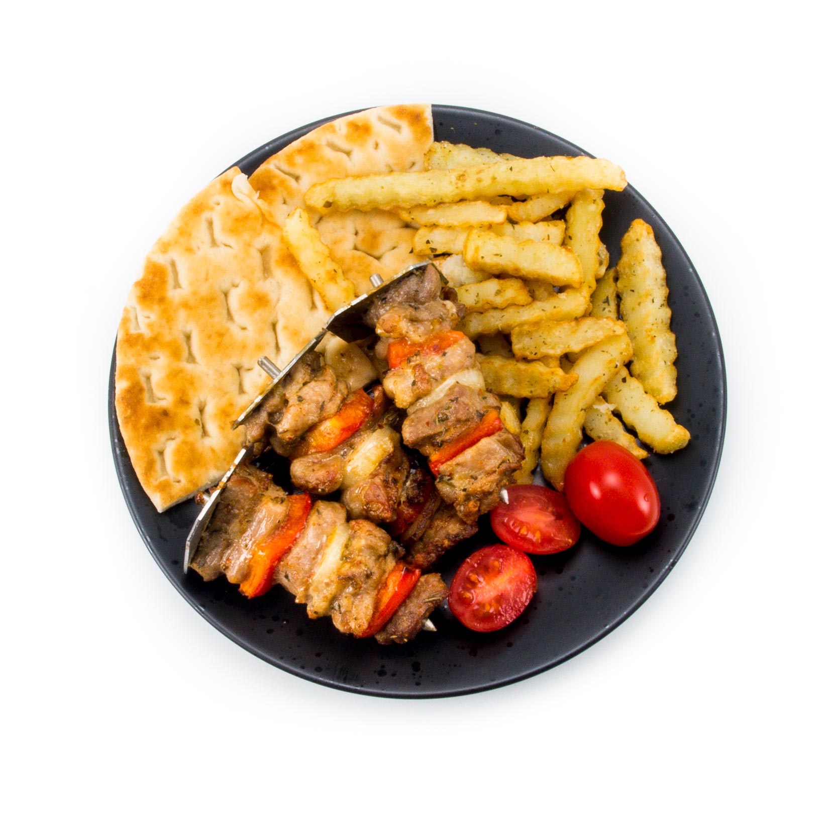 Jako přílohu servírujeme pomfrity, pita chléb a čerstvou sezonní zeleninu dle chuti.
