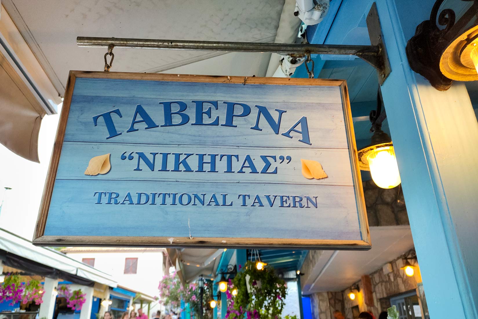Taverna Nikitas v letovisku Agios Nikitas na ostrově Lefkáda leží na levé straně promenády vedoucí k moři, necelých 50 metrů od pláže. Posezení je pod zastřešenou pergolou, lépe řečeno verandou přecházející do prostorů domku, kde se nachází zázemí taverny.